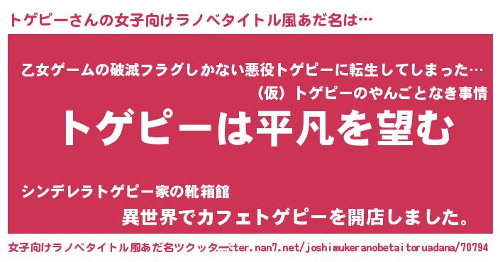 | ポケモン風あだ名 | 『ヒトゲピー』『トーゲイ』 |