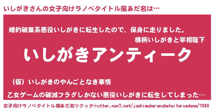 | 男性向けラノベタイトル風あだ名 | 『魔法科高校のいしがき』 |