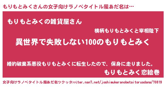 | 意味不明あだ名 | 『永久保存もりもとみく』 |