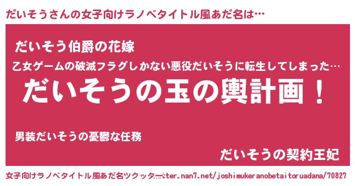 | ヒーロー風カッコイイあだ名 | 『ウルトラだいそうマン』『ネオダイソウ』 |