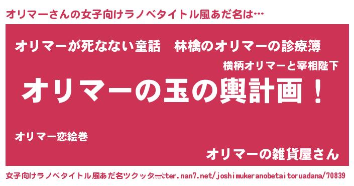 | ヒーロー風カッコイイあだ名 | 『仮面オリダー』『ウルトラオリマーマン』 |