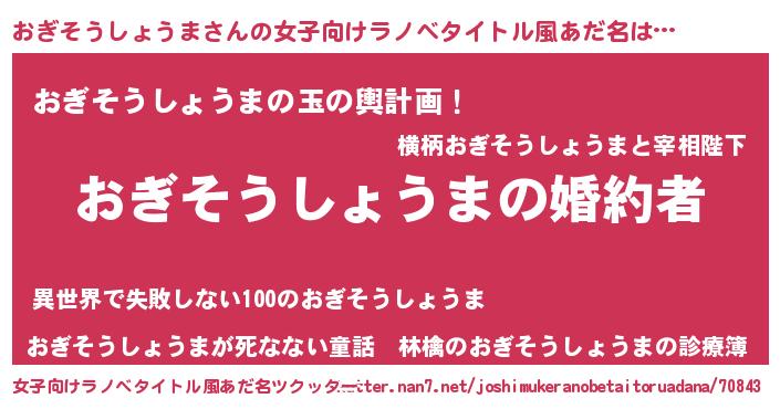 | 欧米人風あだ名 | 『おぎそうしょうまクリステル』 |