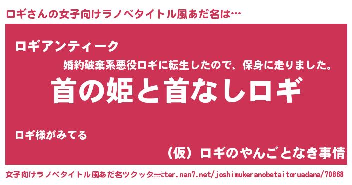 | 男性向けラノベタイトル風あだ名 | 『はたらくロギさま!』『ロギの憂鬱』 |