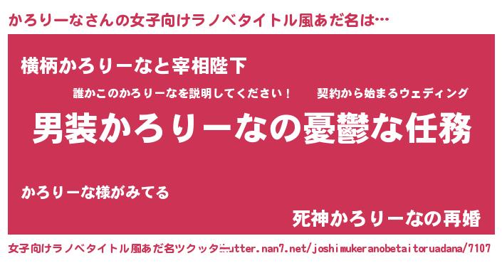 | ヒーロー風カッコイイあだ名 | 『天空の使者かろりーな』『炎刃騎士カロ』 |