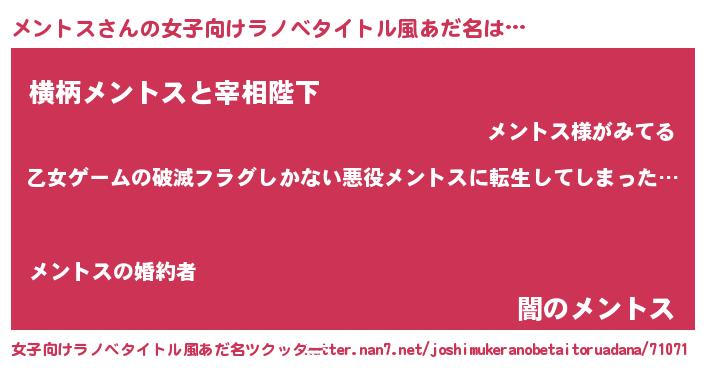 | 男性向けラノベタイトル風あだ名 | 『魔弾の王とメントス』 |