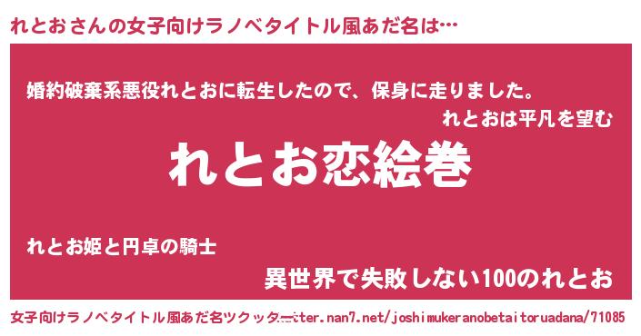 | ヒーロー風カッコイイあだ名 | 『愛の使者れとお』『ネオレトオ』 |