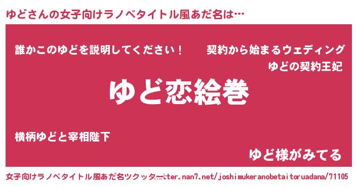 | 男性向けラノベタイトル風あだ名 | 『ノーゲーム・ノーユド』 |