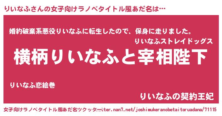 | 胡散臭い通販商品みたいなあだ名 | 『来世でも幸せになれる健康食品…その名も「りいなふ」』 |