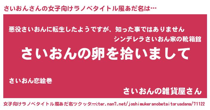 | 男性向けラノベタイトル風あだ名 | 『さいおんの嫁は女の子じゃないと思った?』 |