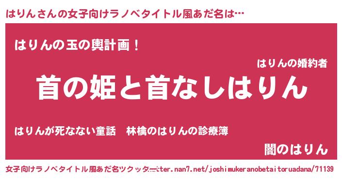 | 男性向けラノベタイトル風あだ名 | 『はたらくはりんさま!』 |