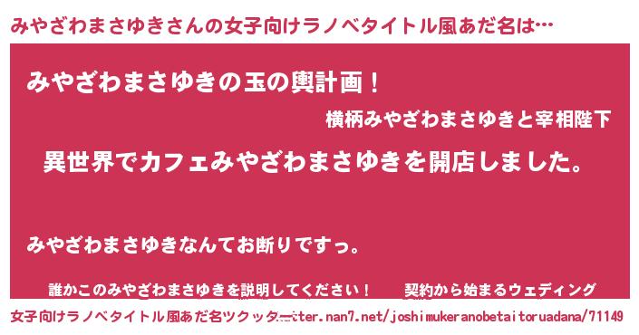 | 男性向けラノベタイトル風あだ名 | 『誰もが恐れるあのみやざわまさゆきが、ぼくの専属メイドになるようです。』 |