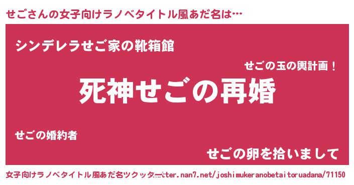 | ヒーロー風カッコイイあだ名 | 『慈愛の使者せご』『暗黒騎士セゴ』 |
