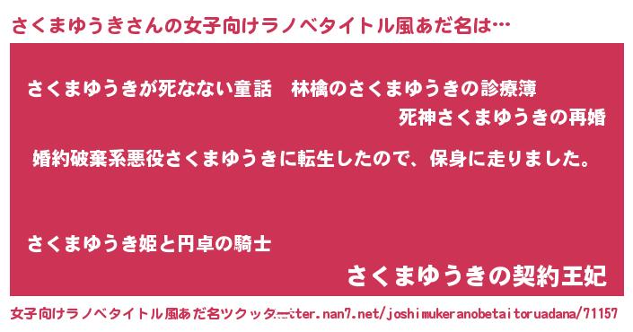 | 男性向けラノベタイトル風あだ名 | 『サクマユウキスレイヤー』 |