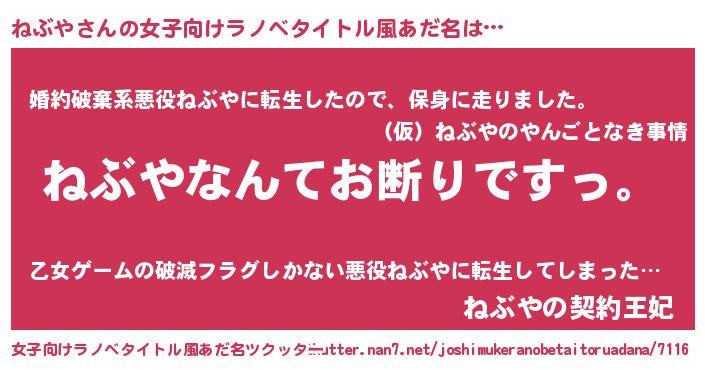 | ヘコむあだ名 | 『ねぶや(遠い目)』『ねぶにゅー』 |