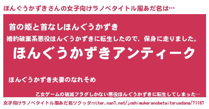 | 意味不明あだ名 | 『自称ほんぐうかずき』 |
