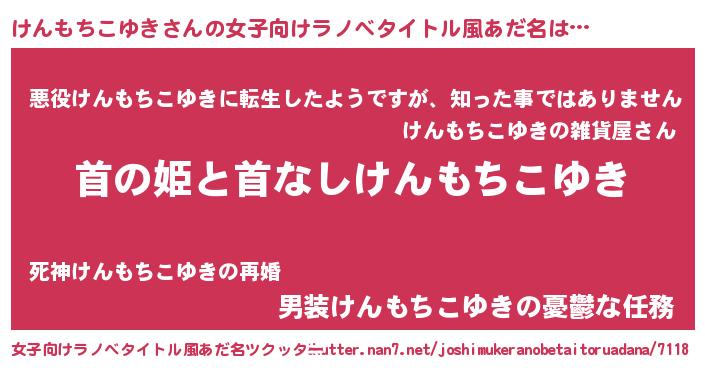 | 胡散臭い通販商品みたいなあだ名 | 『世界中を虜にした世界で10本だけ現存している希少なブランデー…その名も「けんもちこゆき」』 |