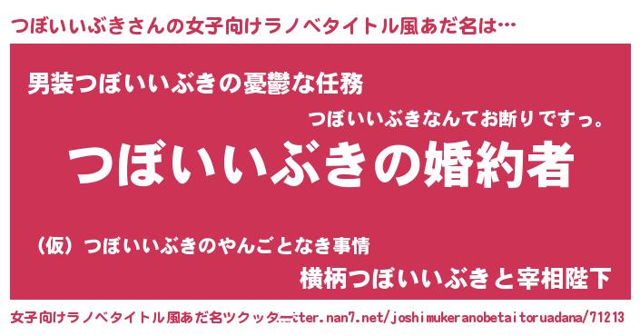 | 意味不明あだ名 | 『つぼいいぶきフォーエバー』 |