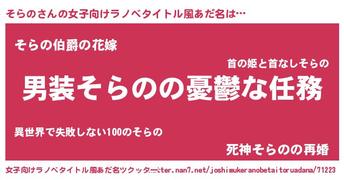 | 男性向けラノベタイトル風あだ名 | 『うちのそらのが世界を掌握している!』 |