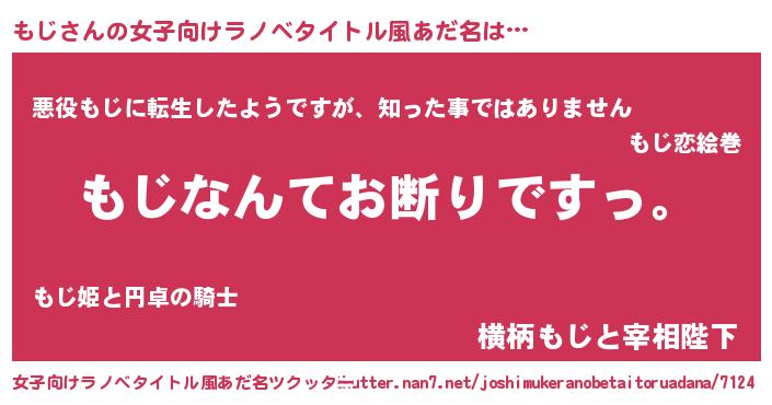 | 男性向けラノベタイトル風あだ名 | 『魔法科高校のもじ』 |