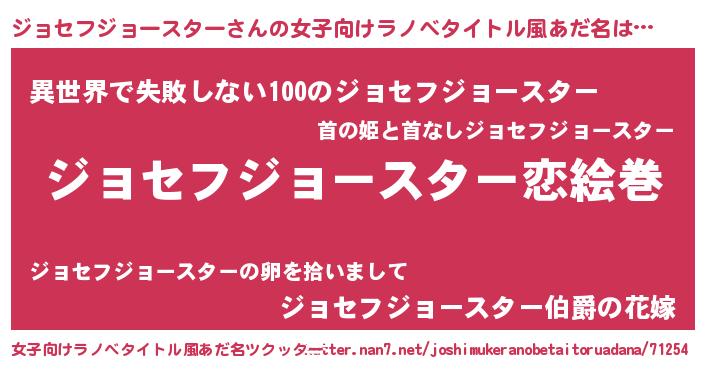 | 胡散臭い通販商品みたいなあだ名 | 『お金では代えられない隕石のかけら…その名も「ジョセフジョースター」』 |