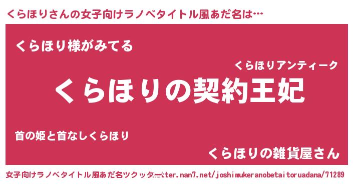 | ヘコむあだ名 | 『くらほり(笑)』『くら太郎』 |