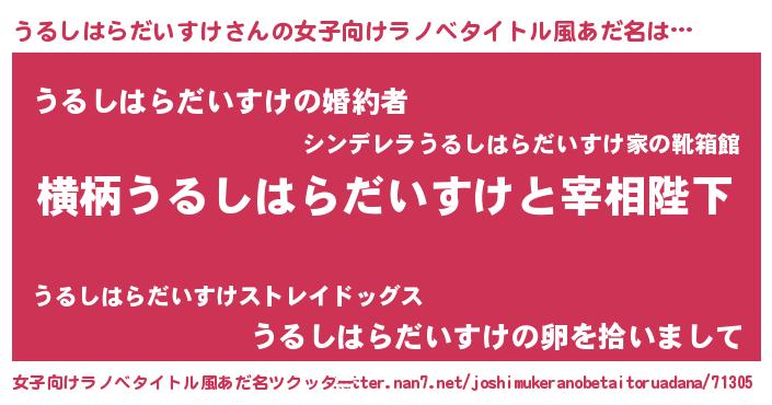 | 胡散臭い通販商品みたいなあだ名 | 『運命の人と巡り会える高級そうな壺…その名も「うるしはらだいすけ」』 |