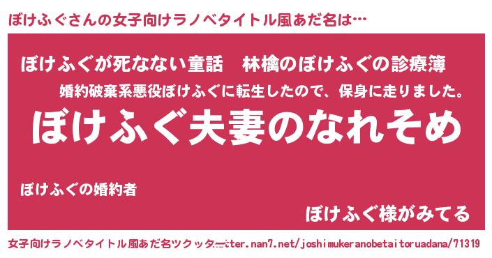 | 可愛いあだ名 | 『ぼけちゅっちゅ』『ぽよぼけ』 |