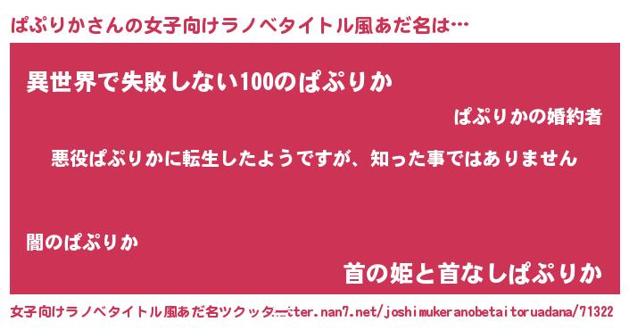 | 男性向けラノベタイトル風あだ名 | 『この素晴らしい世界にぱぷりかを!』 |