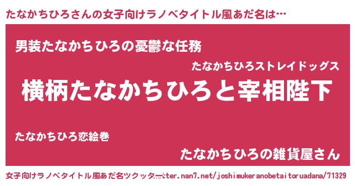 | 恥ずかしいあだ名 | 『たなっちょ』『タナカチヒロデラックス』 |