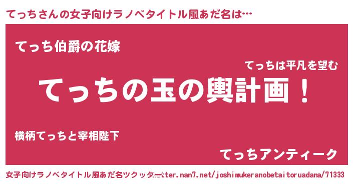 | 胡散臭い通販商品みたいなあだ名 | 『運命の人と巡り会える高級そうな壺…その名も「てっち」』 |