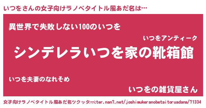 | 男性向けラノベタイトル風あだ名 | 『緋弾のイツヲ』『魔法科高校のいつを』 |