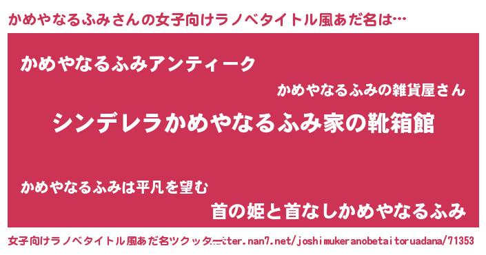 | 意味不明あだ名 | 『自称かめやなるふみ』 |