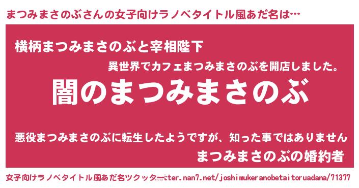 | 意味不明あだ名 | 『自称まつみまさのぶ』 |