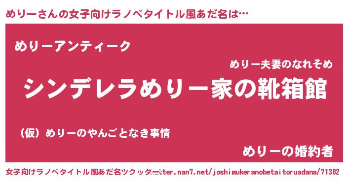 | 胡散臭い通販商品みたいなあだ名 | 『テレビで話題のアガリクス…その名も「めりー」』 |