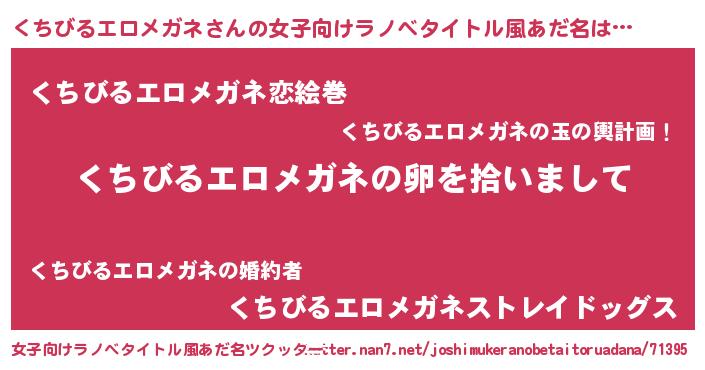 | 男性向けラノベタイトル風あだ名 | 『ダンジョンにくちびるエロメガネを求めるのは間違っているだろうか』 |