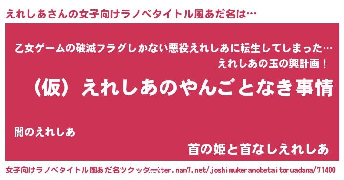| 男性向けラノベタイトル風あだ名 | 『えれしあの憂鬱』 |