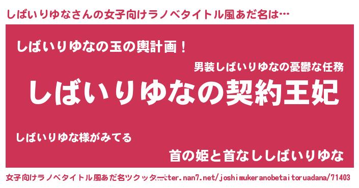 | 胡散臭い通販商品みたいなあだ名 | 『来世でも幸せになれる水素水…その名も「しばいりゆな」』 |