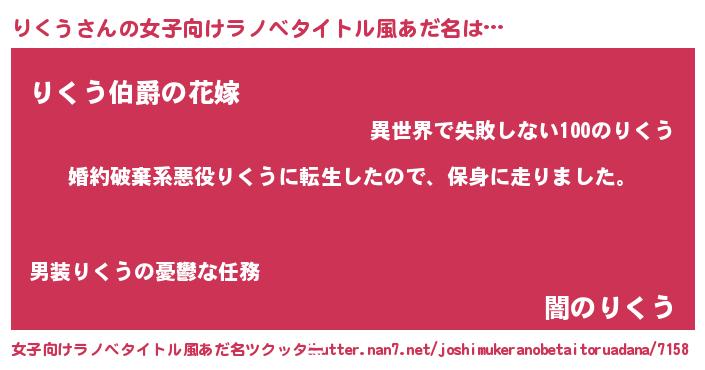 | ファンタジー風あだ名 | 『ユリリクヴァット』『ゼリクトゥ』 |