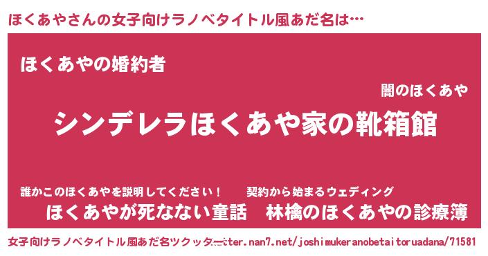 | 胡散臭い通販商品みたいなあだ名 | 『幸せが訪れる高級そうな壺…その名も「ほくあや」』 |