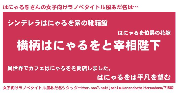 | 男性向けラノベタイトル風あだ名 | 『はにゃるをに滅ぼされるだけの簡単なお仕事です』 |