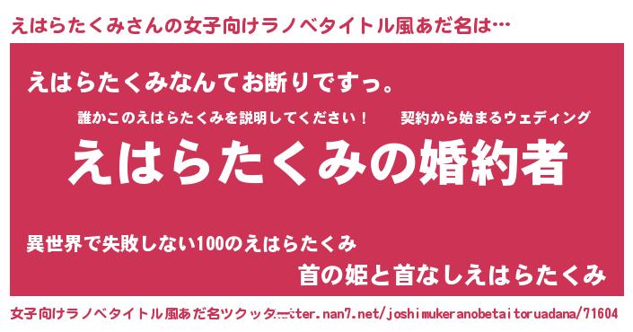 | 胡散臭い通販商品みたいなあだ名 | 『運命の人と巡り会える高級そうな壺…その名も「えはらたくみ」』 |