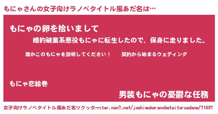 | 胡散臭い通販商品みたいなあだ名 | 『億万長者になれる水晶球…その名も「もにゃ」』 |
