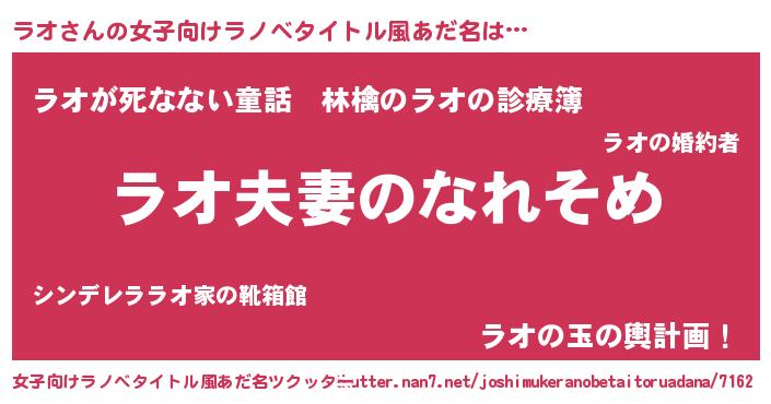 | 男性向けラノベタイトル風あだ名 | 『おまえをオタクにしてやるから、俺をラオにしてくれ! 』 |