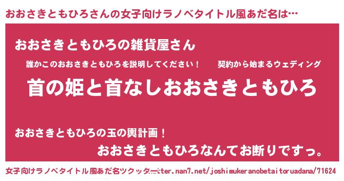 | 男性向けラノベタイトル風あだ名 | 『はたらくおおさきともひろさま!』 |