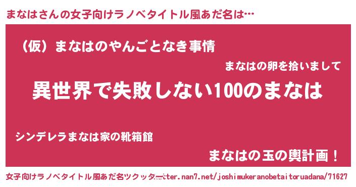| 男性向けラノベタイトル風あだ名 | 『まなはという概念が存在しない退屈な世界 』 |