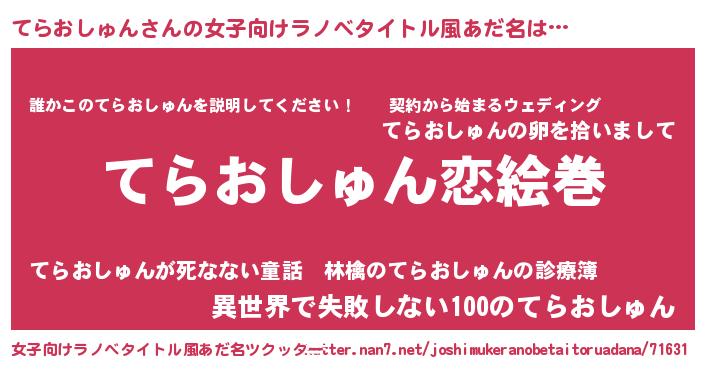 | 意味不明あだ名 | 『眠気覚ましガムてらおしゅん味』 |