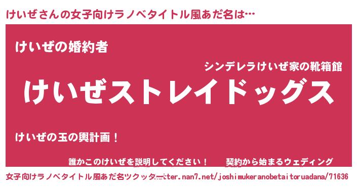 | 男性向けラノベタイトル風あだ名 | 『Re:けいぜから始める異世界生活』 |