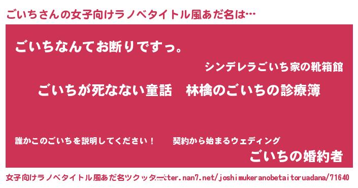 | 男性向けラノベタイトル風あだ名 | 『魔弾の王とごいち』 |