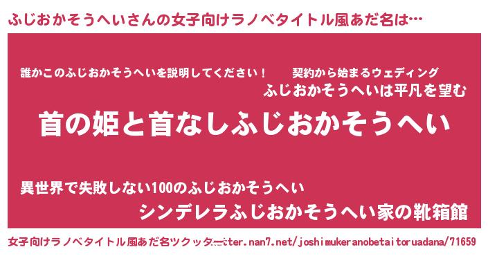 | 男性向けラノベタイトル風あだ名 | 『はたらくふじおかそうへいさま!』 |