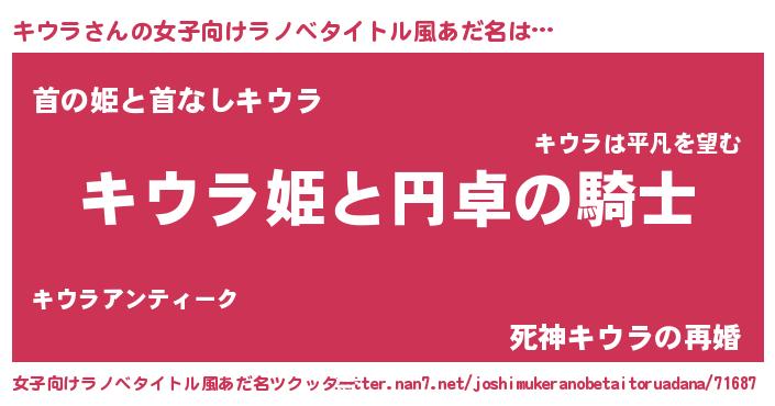 | 男性向けラノベタイトル風あだ名 | 『キウラアートオンライン』 |